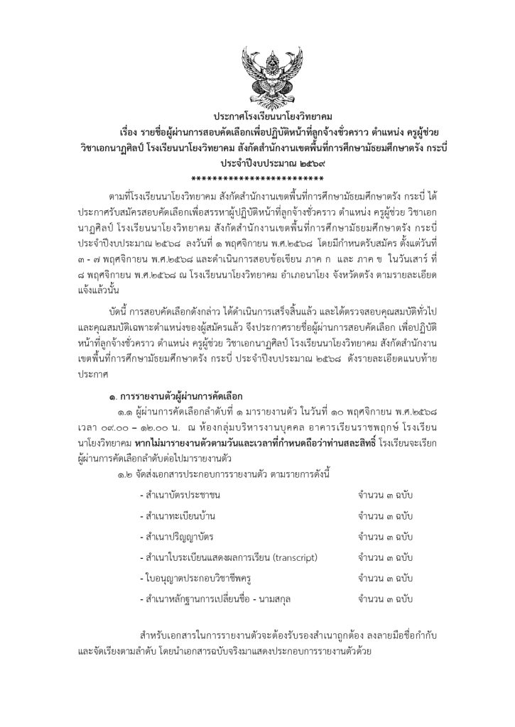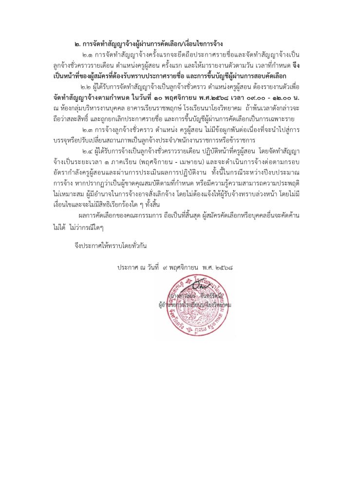 ประกาศรับสมัคร ครูอัตราจ้าง วิชาเอกนาฏศิลป์ 1 อัตรา และวิชาเอกดนตรี 1 อัตรา